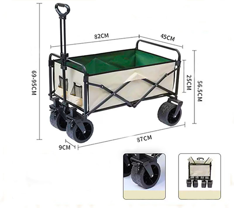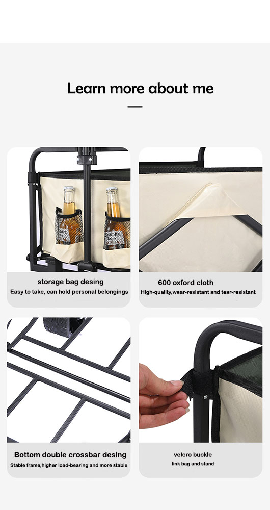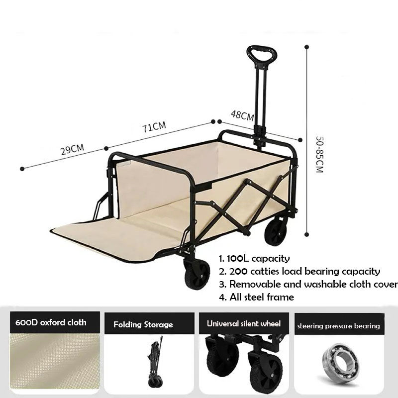 Experience effortless transport with this large-capacity folding trolley, designed for outdoor, shopping, or warehouse use. It features extra-thick Oxford fabric, a sturdy steel frame, and tank-style wheels for superior stability on any surface. The rear opening design makes loading and unloading easy, while the foldable structure allows compact storage. Ideal for camping, gardening, or moving heavy items with ease and style.